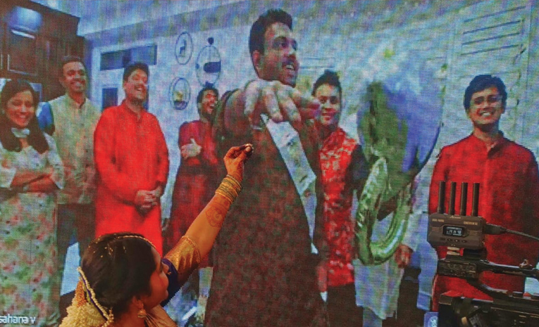 కర్ణాటక: ప్రస్తుతం అన్నీ ఆన్లైన్ మయమైపోయాయి. ఆఖరికి పెళ్లిచూపులు, నిశ్చితార్థాలు కూడా. మాగడికి చెందిన యువకుడు కెనడాలో ఉంటాడు, అతనికి ఉడుపి యువతితో ఆన్లైన్లోనే నిశ్చితార్థం జరిగింది. వరుడు సుహాస్, వధువు మేఘన. ఉడుపిలోని ఒక కళ్యాణ మండపంలో అట్టహాసంగా జరిపించారు. ఉడుపిలో మధ్యాహ్నం 12 గంటలకు కార్యక్రమం జరిగితే, అప్పుడు కెనడాలో అర్ధరాత్రి సమయం అయ్యింది. పెద్ద పెద్ద స్క్రీన్లు ఏర్పాటు చేసి అతిథులు వీక్షించారు. సుహాస్కి సెలవులు దొరక్కపోవడంతో ఇలా కానిచ్చేశారు. జనవరి 7, 8 తేదీల్లో వీరి వివాహం జరగనుంది. పెళ్లి కూడా ఆన్లైన్లో జరిపిస్తారా? అని బంధువులు హాస్యమాడారు.