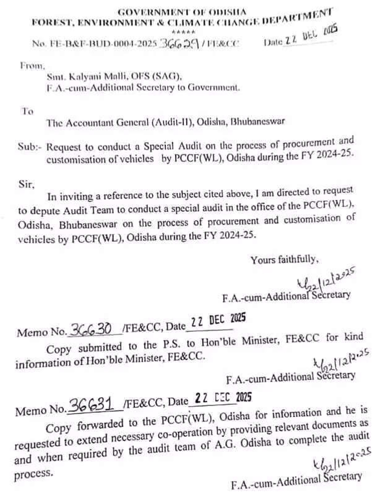 బీజేడీ ఎమ్మెల్యే అరుణ్ కుమార్ సాహూ (Arun Kumar Sahoo) గత మార్చి నెలలో ఈ అంశాన్ని శాసనసభ సమావేశాల్లో లేవనెత్తారు. అటవీశాఖ కొనుగోలు చేసిన వాహనాలకు అయిన ఖర్చు వివరాలు ఇవ్వాలని కోరడంతో ఈ వ్యవహారం వెలుగులోకి వచ్చింది. కార్లు కొనడానికి 7 కోట్ల రూపాయలు ఖర్చయితే, అదనపు హంగులకు ఏకంగా రూ. 5 కోట్లు వెచ్చించినట్టు తాజాగా వెల్లడైంది. దీంతో అటవీ, పర్యావరణ శాఖ మంత్రి గణేష్ రామ్ సింగ్ ఖుంటియా స్పందించారు. ప్రత్యేక ఆడిట్ నిర్వహించి, నిగ్గు తేల్చాలని అకౌంటెంట్ జనరల్ (ఏజీ)ని ఆదేశించారు. వాహనాల కొనుగోలు ప్రక్రియతో పాటు మార్పుల కోసం అయిన ఖర్చులను కూడా పరిశీలించాలని సూచించారు. అక్రమాలు జరిగినట్టు రుజువైతే కఠిన చర్యలు తప్పదని ఆయన హెచ్చరించారు.