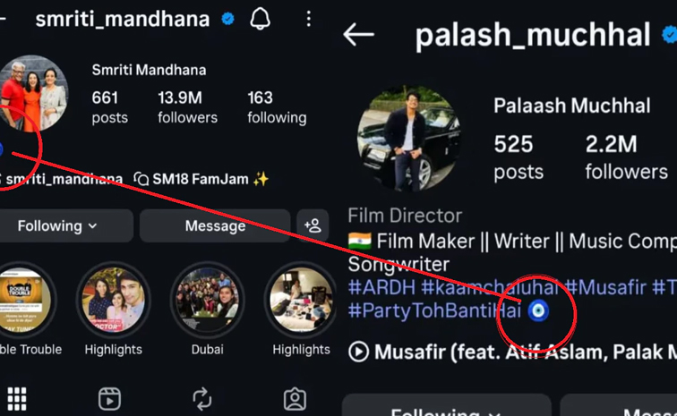 ఇన్స్టాగ్రామ్లో పలాష్ ముచ్చల్ - స్మృతి మంధాన ఇద్దరూ దిష్టి ('blueye') ఎమోజీని చేర్చడం సోషల్ మీడియాలో చర్చకు దారితీసింది. స్మృతి , హల్ది ,మెహందీ వేడుకల ఫోటోలను తన సోషల్ మీడియా ఖాతాల నుంచి తొలగించిన కొన్ని రోజులకే వారిద్దరూ ఇన్స్టా బయోకు ఒకే ఎమోజీని వాడటం సంచలనంగా మారింది.