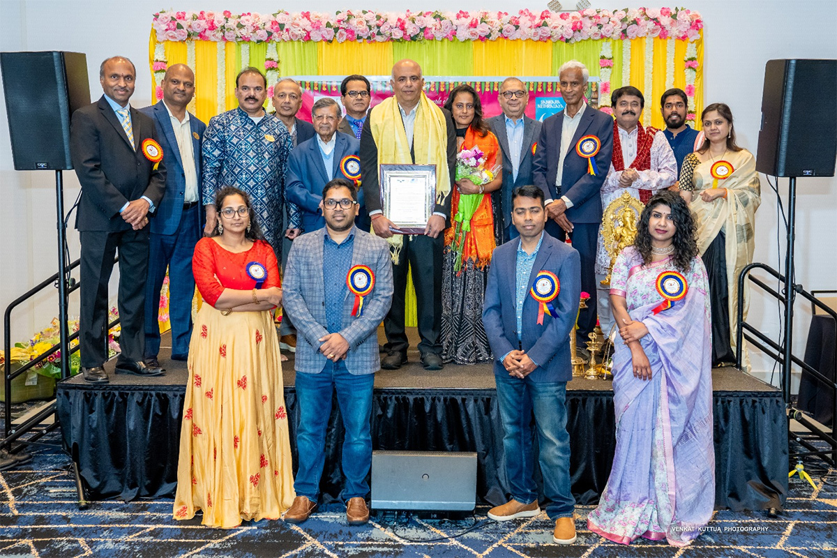 అరవింద్ కృష్ణస్వామికి సంబంధించిన ఆడియో-విజువల్ (AV) ప్రజెంటేషన్ ప్రదర్శించినప్పుడు, ఆయన చేసిన అద్భుతమైన $555,000 విరాళాన్ని గుర్తించి, ప్రేక్షకులు కరతాళధ్వనులతో హోరెత్తిస్తూ, లేచి నిలబడి ఘన సన్మానం (standing ovation) చేశారు. 12 MESU (Mobile Eye Surgical Unit) 'Adopt-A-Village' కంటి వైద్య శిబిరాలకు మద్దతుగా అరవింద్ $155,000 విరాళం అందించారని అధ్యక్షుడు బాల ఇందుర్తి తెలియజేశారు. అంతేకాకుండా, భారతదేశంలో వైద్య సేవలు సరిగా అందని అత్యంత వెనుకబడిన ప్రాంతాలలో ఒకచోట కొత్త MESU కేంద్రాన్ని స్థాపించడానికి అరవింద్ ఉదారంగా ప్రకటించిన $400,000 విరాళం వినియోగించబడుతుంది.