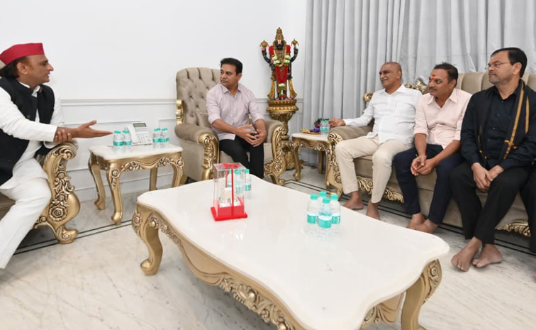 కేటీఆర్ మాట్లాడుతూ.. అఖిలేష్ యాదవ్ తమకు స్ఫూర్తి అన్నారు. అసెంబ్లీ ఎన్నికల్లో ఓడిపోయినా 37 ఎంపీ స్థానాలు సాధించారు. దేశంలో మూడో స్థానంలో పార్టీని నిలిపారని కేటీఆర్ అన్నారు.