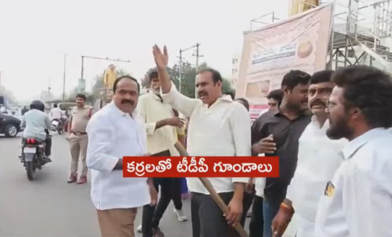 అయితే.. గుంటూరు సెంటర్లో ఆయన్ని అడ్డుకున్న టీడీపీ గూండాలు.. దాడికి యత్నించారు. అయితే తృటిలో ఆయన ఆ దాడి నుంచి బయటపడ్డారు . అయితే దాడి సమయంలో కర్రలు, రాడ్లతో టీడీపీ కేడర్ హల్చల్ చేసింది. పోలీసులు అక్కడ ఉండగానే వాటిని పట్టుకుని అక్కడంతా కలియ దిరిగింది. పట్టపగలే ఇలా సంచరిస్తుండడంతో.. ప్రజలంతా భీతిల్లిపోయారు. పోలీసులైనా వాళ్లను అడ్డుకునే ప్రయత్నం కూడా చేయలేదని అంటున్నారు.