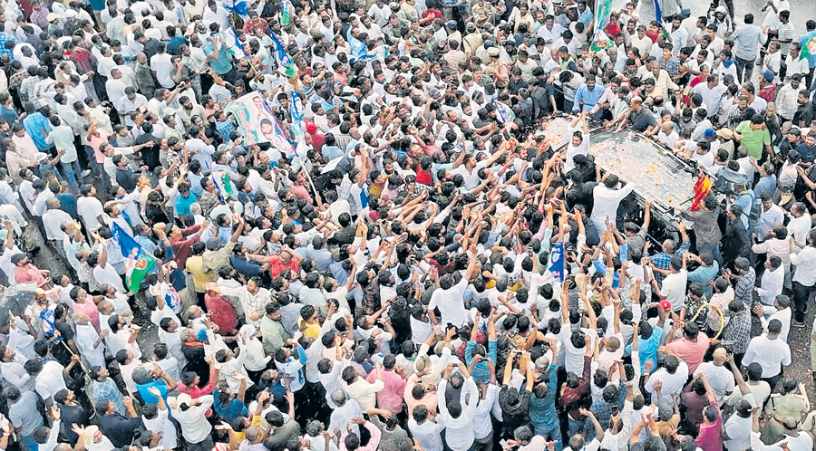 నర్సీపట్నం మెడికల్ కాలేజీ వద్దకు వస్తున్న వైఎస్ జగన్మోహన్రెడ్డి, భారీగా తరలివచ్చిన వైఎస్సార్సీపీ శ్రేణులు, ప్రజలు