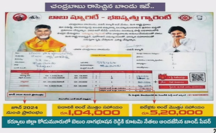 సాక్షి, తాడేపల్లి: ముఖ్యమంత్రి చంద్రబాబుకు మేనిఫెస్టో అంటే చిత్తు కాగితం అంటూ ఘాటు విమర్శలు చేశారు వైఎస్సార్సీపీ అధినేత వైఎస్ జగన్. ఎన్నికలకు ముందు బాండ్లు ఇచ్చి మరీ ప్రజలను మోసం చేశారని ఆరోపించారు. నిరుద్యోగ భృతి, ప్రతీ మహిళలకు నెలకు 1500 ఏమైంది? అని ప్రశ్నించారు. అప్పులు తెచ్చిన డబ్బు అంతా ఎక్కడికి పోతుంది?. సూపర్ సిక్స్ సక్సెస్ అని ఎలా చెబుతున్నారు అంటూ మండిపడ్డారు. పథకానికి అమ్మవారి పేరు పెట్టి మహిళల్ని మోసం చేసి ఘనత చంద్రబాబుదే అని విమర్శించారు.