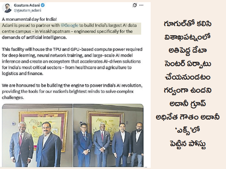 అదానీ డేటా సెంటర్కు కొనసాగింపే గూగుల్