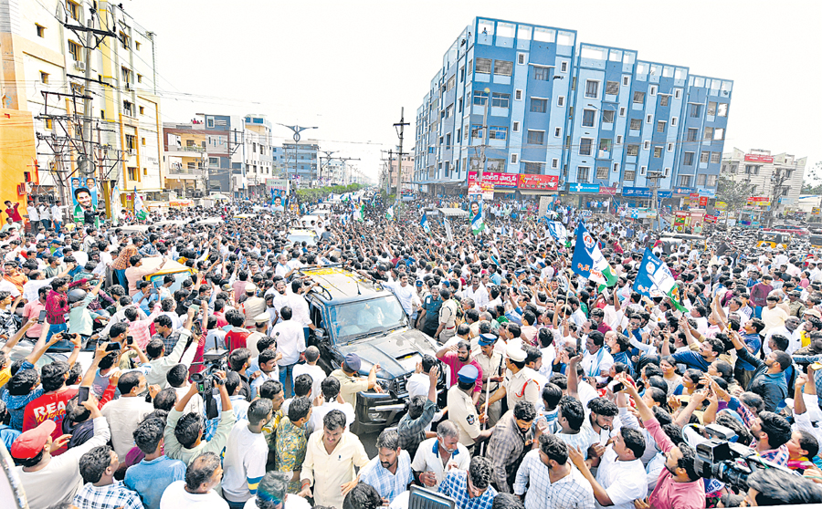 గుంటూరులోని చుట్టుగుంట సెంటర్లో మాజీ సీఎం వైఎస్ జగన్కు ఘన స్వాగతం పలుకుతున్న అశేష జనసందోహంలో ఓ భాగం