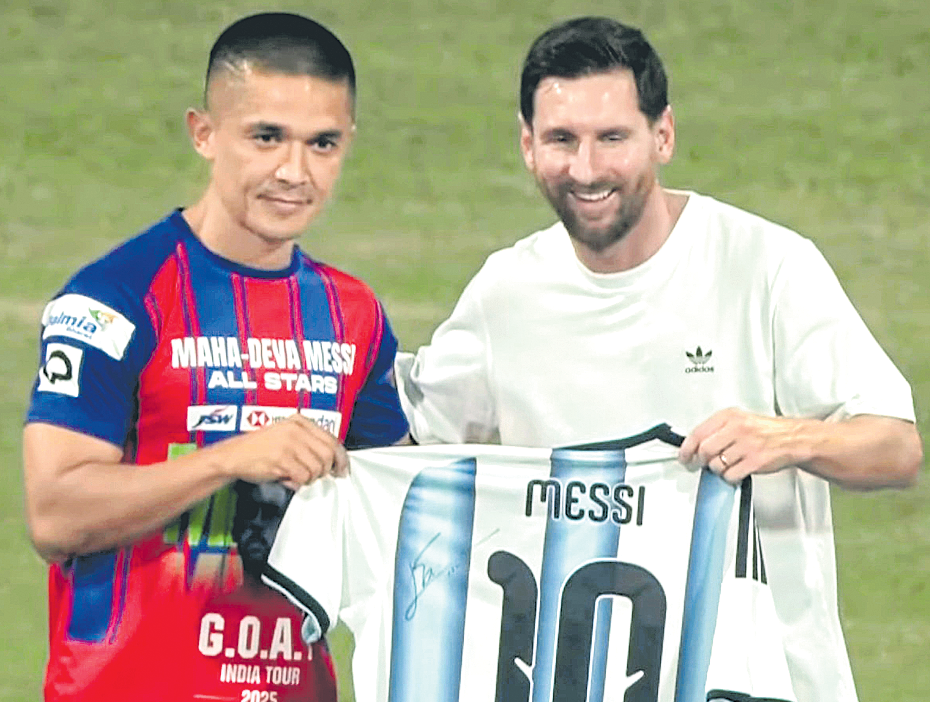అర్జెంటీనా స్టార్కు టెండూల్కర్ తను స్వయంగా ఆటోగ్రాఫ్ చేసిన వన్డే జెర్సీని మెస్సీకి అందివ్వగా... ప్రతిగా మెస్సీ కూడా తన సంతకంతో కూడిన ఫుట్బాల్ను సచిన్కు ఇచ్చాడు. అన్నట్లు ఆటలు వేరైనా... దేశాలు వేరైనా... సచిన్ జెర్సీ నంబర్, మెస్సీ జెర్సీ నంబర్ ఒక్కటే 10! అదేనండీ ‘దస్కా దమ్’’! దిగ్గజాలు పరస్పర బహుమతులు ఇస్తూ స్వీకరిస్తుంటే అభిమానులంతా ఉప్పొంగిపోయారు. ఈ అపు‘రూపం’ను తమ ఫోన్ కెమెరాల్లో పదిలంగా బందీచేసుకున్నారంతా!