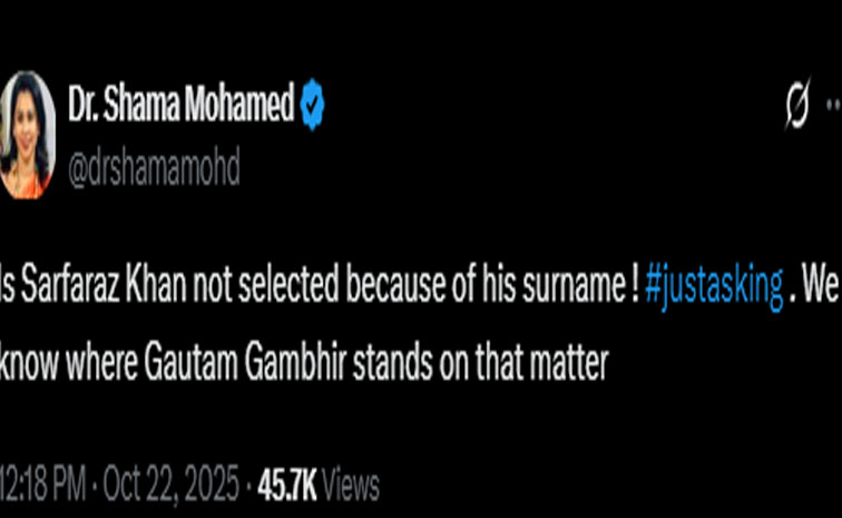 ‘‘ఇంటిపేరు కారణంగానే సర్ఫరాజ్ ఖాన్ జట్టుకు ఎంపిక కాలేదా?.. ఊరికే అడుగుతున్నా అంతే!.. ఈ విషయంలో గౌతం గంభీర్ విధానాలు ఎలా ఉంటాయో మనకు తెలిసిందే కదా!’’ అంటూ హెడ్కోచ్, బీజేపీ మాజీ ఎంపీ గౌతం గంభీర్ను షామా మొహమ్మద్ టార్గెట్ చేశారు.