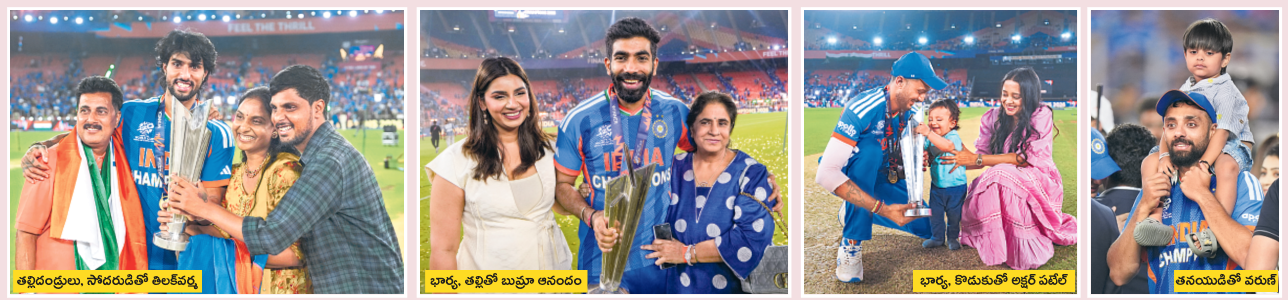 ఓవైపు ఆ్రస్టేలియా–న్యూజిలాండ్ ఆతిథ్యమిచ్చే టి20 ప్రపంచకప్లో ‘హ్యాట్రిక్’ టైటిల్ ఊరిస్తుంటే... ప్రతిష్టాత్మక లాస్ ఏంజెలిస్ ఒలింపిక్స్ కూడా జరుగనున్నాయి. ఇందులోనూ చాంపియన్ అయితే మాత్రం 2028 మనకి బంగారమవుతుంది! ఆదివారం రాత్రి కప్తో పిచ్పై కూర్చున్న కెపె్టన్ సూర్యకుమార్ ఫొటోలకు పోజులిస్తూ తమ తదుపరి లక్ష్యం ఒలింపిక్స్ స్వర్ణం, మరో టి20 ప్రపంచకప్ గెలవడమనే చెప్పాడు. ఆదివారం రాత్రి విన్నర్స్ ట్రోఫీ బహుమతి ప్రదానోత్సవం తర్వాత భారత క్రికెటర్లు తమ కుటుంబసభ్యులతో మైదానంలో ఉల్లాసంగా గడపడంతోపాటు ట్రోఫీతో ఫొటోలు దిగారు. సోమవారం మధ్యాహ్నం అహ్మదాబాద్ నుంచి పలువురు ఆటగాళ్లు తమ స్వస్థలాలకు బయలుదేరారు.