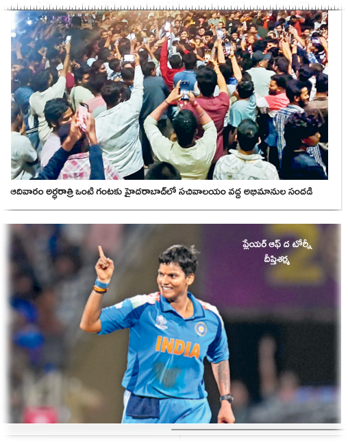నడిరాతిరంతా సంతోషాల జాతర చేసుకుంది. తెల్లవారేదాకా ఊరు వాడ తేడానే లేకుండా గల్లీ నుంచి ఢిల్లీ దాకా గెలుపు మురిపెంగా... మూడు రంగుల పతాకాలు, జయజయధ్వానాలే వినిపించాయి. కనిపించాయి. భారత ప్రధాని నరేంద్ర మోదీ సహా అతిరథమహారథులంతా మహిళల విజయాన్ని వేనోళ్ల ప్రశంసలతో ముంచెత్తారు. హర్మన్ సేన పోరాటాన్ని ఆకాశానికెత్తారు.
