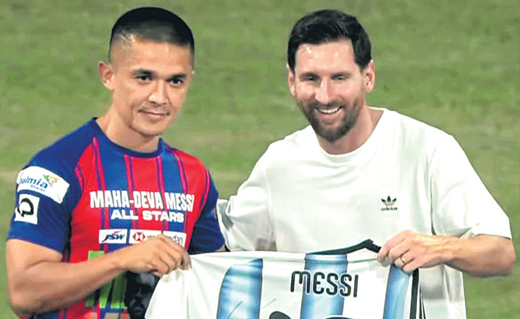 అన్నట్లు ఈ టూర్లో భాగంగా ముంబైలోని వాంఖడేలో మెస్సీ.. ఛెత్రిని ఆలింగనం చేసుకోవడం, అతడికి తన సంతకంతో కూడిన జెర్సీని ఇవ్వడం భారత సగటు ఫుట్బాల్ అభిమానికి సంతృప్తినిచ్చిన క్షణాల్లో ఒకటి. అదే విధంగా.. ప్రాజెక్ట్ మహాదేవ పేరిట రాష్ట్రంలో ఫుట్బాల్ ప్రతిభను వెలికితీస్తామని ప్రకటించడం ఇక్కడి హైలైట్లలో ఒకటి.
