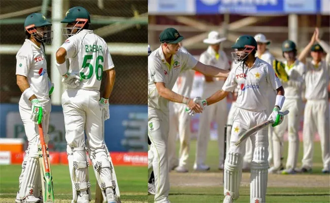 PAK VS AUS 2nd Test: కరాచీ వేదికగా ఆస్ట్రేలియాతో జరిగిన రెండో టెస్ట్లో ఆతిధ్య పాకిస్థాన్ అద్భుతమైన పోరాట పటిమను కనబర్చింది. 506 పరుగుల భారీ లక్ష్య ఛేదనలో రికార్డు స్థాయిలో పరుగులు (443/7) చేసి మ్యాచ్ను డ్రా చేసుకుంది. ఓపెనర్ అబ్దుల్లా షఫీక్ (305 బంతుల్లో 96; 6 ఫోర్లు, సిక్స్), కెప్టెన్ బాబర్ ఆజమ్ (425 బంతుల్లో 196; 21 ఫోర్లు, సిక్స్), వికెట్ కీపర్ మహ్మద్ రిజ్వాన్ (177 బంతుల్లో 104 నాటౌట్; 11 ఫోర్లు, సిక్సర్) వీరోచితంగా పోరాడి ప్రత్యర్ధి చేతుల్లో నుంచి విజయాన్ని లాగేసుకున్నారు.