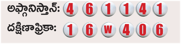 దక్షిణాఫ్రికా ఇన్నింగ్స్: మార్క్రమ్ (సి) నబీ (బి) ఫారుఖీ 5; డికాక్ (సి) జద్రాన్ (బి) రషీద్ 59; రికెల్టన్ (ఎల్బీ) (బి) రషీద్ 61; బ్రెవిస్ (సి) నబీ (బి) ఒమర్జాయ్ 23; మిల్లర్ (నాటౌట్) 20; స్టబ్స్ (సి) ముజీబ్ (బి) ఒమర్జాయ్ 1; యాన్సెన్ (సి) అటల్ (బి) ఒమర్జాయ్ 16; ఎక్స్ట్రాలు 2; మొత్తం (20 ఓవర్లలో 6 వికెట్లకు) 187. వికెట్ల పతనం: 1–12, 2–126, 3–127, 4–155, 5–159, 6–187. బౌలింగ్: ఫరూఖీ 4–0–32–1, ముజీబ్ 3–0–30–0, ఒమర్జాయ్ 4–0–41–3, నబీ 2–0–20–0, రషీద్ 4–0–28–2, నూర్ 3–0–35–0.