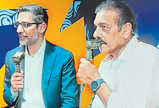 భారత పర్యటనలో ఉన్న గూగుల్ సీఈఓ సుందర్ పిచాయ్ ఆదివారం భారత్, దక్షిణాఫ్రికా మ్యాచ్కు అతిథిగా హాజరయ్యారు. మాజీ కెప్టెన్ సునీల్ గావస్కర్తో కలిసి ఆయన టి20 వరల్డ్ కప్ ట్రోఫీని మైదానంలోకి తీసుకొచ్చారు. ఆ తర్వాత కామెంటరీ బాక్స్లో కూడా రవిశాస్త్రితో ఆయన ముచ్చటించారు.