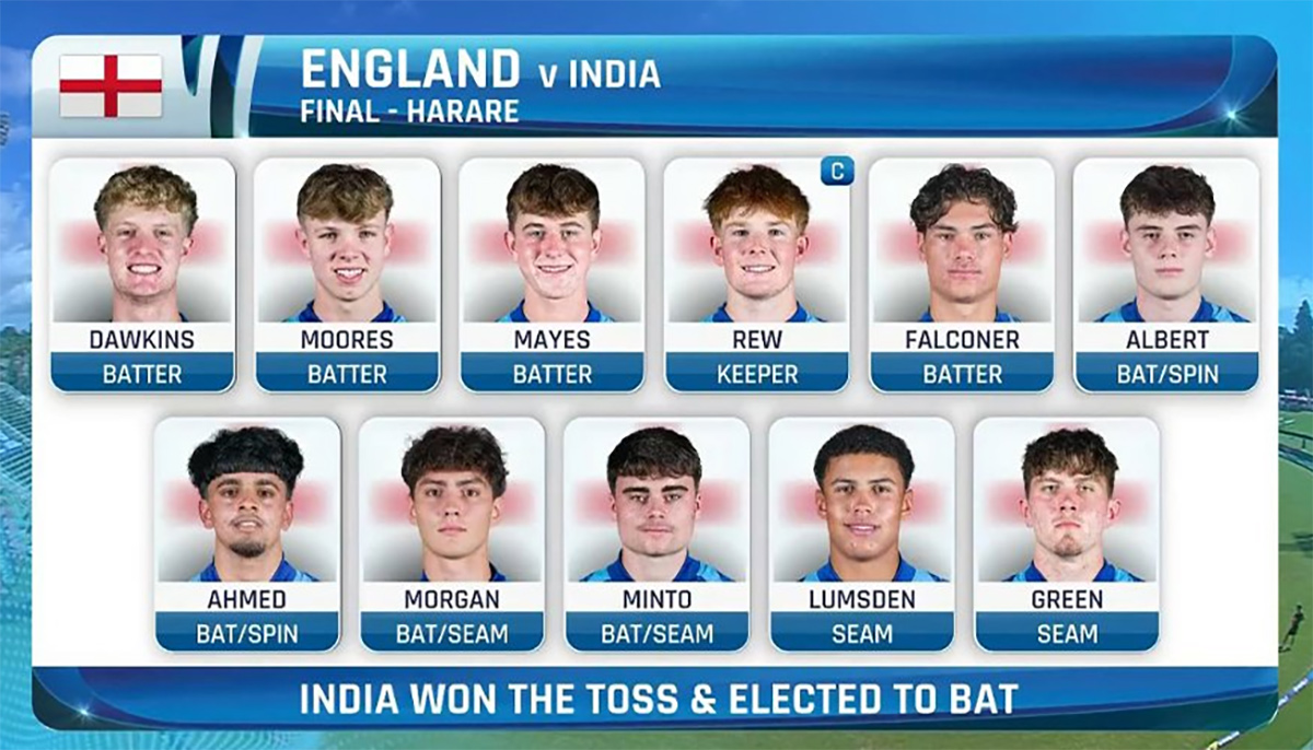 కాగా అండర్-19 వరల్డ్కప్ టోర్నీలో భారత్ ఇప్పటి వరకు ఆరుసార్లు టైటిల్ గెలిచింది. ఇప్పటికి పదిసార్లు (తాజా ఎడిషన్ కలిపి) ఫైనల్ చేరింది భారత్. మరోవైపు.. ఇప్పటికి ఒకే ఒక్కసారి ట్రోఫీ సాధించిన ఇంగ్లండ్.. రెండో టైటిల్పై కన్నేసింది.