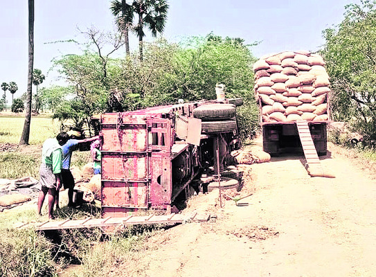 ఆత్మకూరు: ధాన్యం లోడ్తో వెళ్తున్న లారీ అదుపుతప్పి పొలాల్లో బోల్తా పడిన ఘటన మంగళవారం జరిగింది. స్థానికుల కథనం మేరకు.. మున్సిపల్ పరిధిలోని 9వ వార్డు అనంతరాయనియేని గిరిజన కాలనీ వద్ద పొలాల్లో లారీలో ధాన్యం బస్తాలు లోడ్ చేయగా నెల్లూరుకు బయలుదేరింది. ఈ క్రమంలో డొంకరోడ్డు కొంతమేర కుంగి ఉండటంతో లారీ అదుపుతప్పి పొలాల్లో బోల్తా పడింది. ఈ ఘటనలో డ్రైవర్, క్లీనర్ గాయపడగా వారిని ప్రభుత్వాస్పత్రికి తరలించారు. ధాన్యం బస్తాలు అన్ని పొలాల్లో చెల్లాచెదురుగా పడిపోయాయి. దీంతో మరో లారీలో లోడ్ చేసి తరలించారు. ఈ ఘటనపై కేసు నమోదు చేసినట్లు పోలీసులు తెలిపారు.