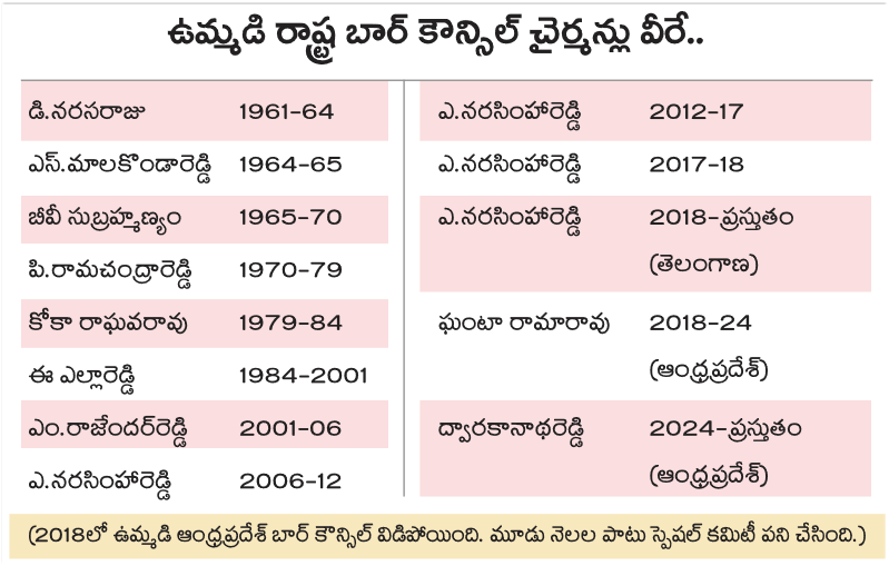 » ఉమ్మడి బార్ కౌన్సిల్ విభజన తర్వాత తలెత్తిన వివిధ సమస్యలను విజయవంతంగా పరిష్కరించడం