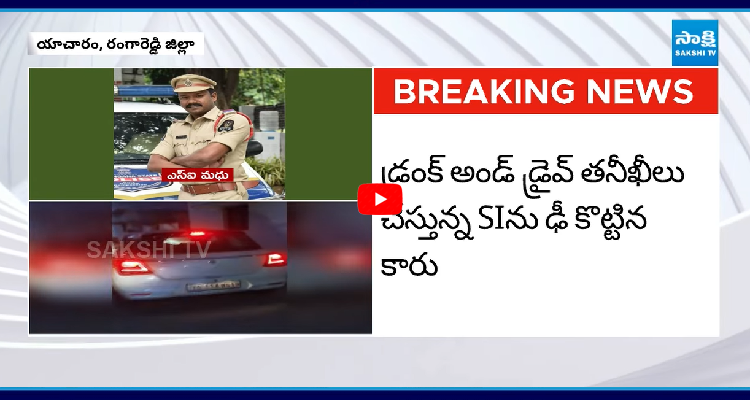 రంగారెడ్డి జిల్లా: ఓ ఎస్ఐ విధుల్లో భాగంగా డ్రంకెన్ డ్రైవ్ నిర్వహిస్తున్నాడు.. అంతలో అతివేగంగా దూసుకొచ్చిన కారు ఆయనను ఢీకొట్టింది.. బ్యానెట్ను పట్టుకున్న ఎస్ఐ కిలోమీటర్ మేర వెళ్లిన తర్వాత కిందికి దూకి ప్రాణాలతో బయటపడ్డాడు.. ఈ ఘటనలో మరో ముగ్గురు తీవ్ర గాయాలపాలయ్యారు. ఈ సంఘటన రంగారెడ్డి జిల్లా యాచారంలో చోటుచేసుకుంది. యాచారం మండల కేంద్రంలో ఆదివారం సాయంత్రం సీఐ నందీశ్వర్రెడ్డి, ఎస్ఐ మధు సిబ్బందితో సాగర్ హైవేపై డ్రంకెన్ అండ్ డ్రైవ్ నిర్వహిస్తున్నారు. మద్యం మత్తులో మాల్ నుంచి కారులో ఇబ్రహీంపట్నం వైపు ఇద్దరు వ్యక్తులు వెళ్తున్నారు.