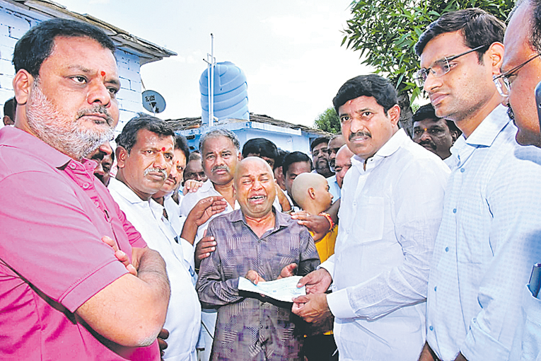 వికారాబాదు జిల్లా: నా రెండో కూతురు ఉద్యోగం చేస్తూ నెలకు రూ.60 వేలు సంపాదించేది.. ఇప్పుడు ముగ్గురు కూతుళ్లు నాకు పంపిన జీతమా ఇది పటేలా? అంటూ.. తనూష, సాయిప్రియ, నందిని తండ్రి ఎల్లయ్యగౌడ్ రోదించిన తీరు అందరినీ కంటతడి పెట్టించింది. ప్రభుత్వం అందజేసిన నష్టపరిహారం అందుకున్న సందర్భంగా ఆయన చేసిన వ్యాఖ్యలివి. మీర్జాగూడ బస్సు ప్రమాదంలో ముగ్గురు కుమార్తెలను కోల్పోయిన బాధిత తల్లిదండ్రులను వారి స్వగ్రామమైన పేర్కంపల్లిలో.. ఎమ్మెల్యే మనోహర్రెడ్డి మంగళవారం పరామర్శించారు. అనంతరం మృతులు ఒక్కొక్కరికి ప్రభుత్వం ప్రకటించిన రూ.5 లక్షలు, ఆర్టీసీ తరపున రూ.2 లక్షల చెక్కులను మొత్తం రూ.21 లక్షల విలువైన చెక్కులను ఎల్లయ్యగౌడ్కు ఆయన అందజేశారు.