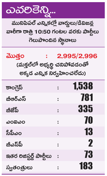 2,995 వార్డులు, డివిజన్లకు గాను 1,530కి పైగా స్థానాల్లో గెలుపు.. మెదక్తో పాటు హైదరాబాద్ శివార్లలో బీఆర్ఎస్ దూకుడు