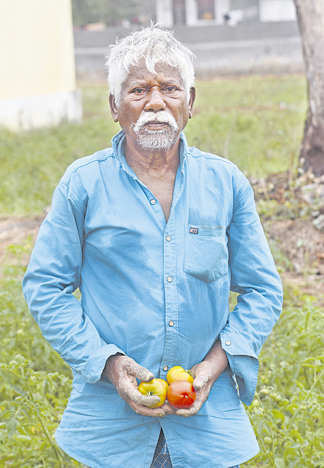 ఈ ఫొటోలో కన్పిస్తున్న రైతు మహబూబాబాద్ మండలం గుండ్లబోడు తండాకు చెందిన ధరావత్ చంద్రు. తనకున్న ఎకరంలో టమాటా సాగుచేశాడు. నారు తెచ్చిన నాటినుంచి ఇప్పటి వరకు దాదాపు రూ.50 వేల ఖర్చు వచ్చింది. ‘దిగుబడి బాగా ఉంది రూ.లక్ష మేరకు ఆదాయం వస్తుందని అనుకున్నా.. కానీ కిలో రూ.5కే అమ్మాల్సి వస్తోంది, దీంతో లాభమేమో కానీ పెట్టిన పెట్టుబడి కూడా రావడం లేదు’అని ఆవేదన వ్యక్తం చేస్తున్నారు.