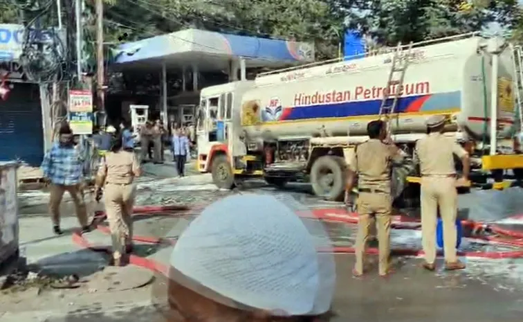 సాక్షి,హైదరాబాద్:నాంపల్లి రైల్వేస్టేషన్కు బుధవారం(డిసెంబర్ 11) పెను ప్రమాదం తప్పింది. స్టేషన్ పక్కనే ఉన్న పెట్రోల్ బంక్లో అగ్నిప్రమాదం జరిగింది. పెట్రోల్ ట్యాంకర్ నుంచి పెట్రోల్ అన్లోడ్ చేస్తున్న సమయంలో ఉత్పన్నమైన రాపిడ్ ఫోర్స్తో మంటలంటుకున్నాయి. మంటలను ఆర్పడానికి సిబ్బంది ప్రయత్నం చేశారు.