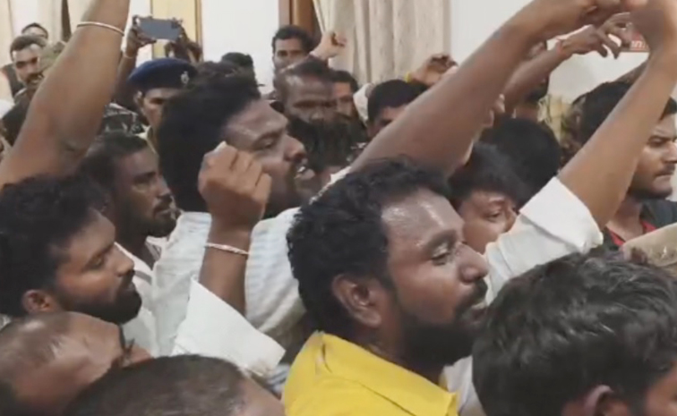 సాక్షి,మంచిర్యాల జిల్లా: క్యాతన పల్లిలో ఉద్రిక్తత నెలకొంది. బాల్క సుమన్ను అరెస్ట్ చేసేందుకు పోలీసులు భారీగా తరలి వచ్చారు. ఇంట్లో ఉన్న బాల్క సుమన్ను అదుపులోకి తీసుకునేందుకు పోలీసులు ఆయన ఇంటిగేటును బలవంతంగా ఓపెన్ చేసేందుకు ప్రయత్నించారు. అయితే, పోలీసుల రాకపై సమాచారం అందుకున్న బీఆర్ఎస్ కార్యకర్తలు భారీగా తరలివచ్చారు. బాల్క సుమన్ ఇంటి గేట్ ఓపెన్ చేసేందుకు ప్రయత్నిస్తున్న పోలీసుల్ని బీఆర్ఎస్ శ్రేణులు అడ్డుకునే ప్రయత్నం చేశారు. అయినప్పటికీ బాల్క సుమన్ ఇంటి గేట్లను బలవంతంగా ఓపెన్ చేశారు. ఇంట్లో ఉన్న బాల్క సుమన్ను పోలీసులు అదుపులోకి తీసుకున్నారు.