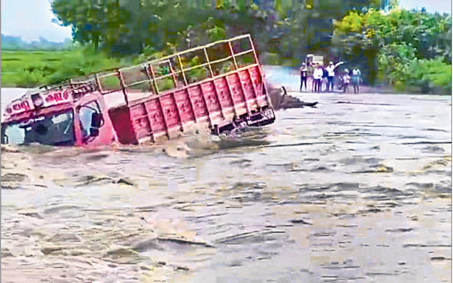 ఖమ్మం జిల్లా కొణిజర్ల మండలం నిమ్మవాగులో కొట్టుకుపోతున్న డీసీఎం వాహనం
