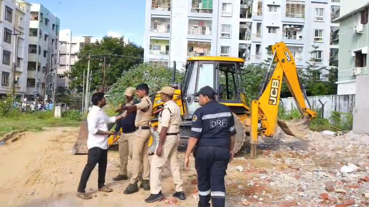 దీనికి సంబంధించిన వివరాలు ఇలా ఉన్నాయి.. మియాపూర్లో సర్వే నెంబర్ 100లో భారీగా అక్రమ నిర్మాణాలు జరిగాయి. సర్వే నెంబర్ మార్చి.. హెచ్ఎండీఏ ఫెన్సింగ్ తొలగించిన నిర్మాణదారులు అక్కడ అక్రమంగా నిర్మాణాలను చేపట్టారు. ప్రభుత్వ భూమి సర్వే నంబరు 100లో అక్రమంగా 307, 308తో దొంగ రికార్డులు సృష్టించారు. ఈ క్రమంలో స్థానికులు.. హైడ్రాకు ఫిర్యాదు చేశారు. దీంతో, రంగంలోకి దిగిన హైడ్రా అధికారులు.. అక్రమ నిర్మాణాలను గుర్తించి కూల్చివేతలకు సిద్ధమయ్యారు. స్థానికంగా ఎలాంటి అవాంఛనీయ ఘటన చోటుచేసుకుండా అక్కడ పోలీసులు భారీగా మోహరించారు.