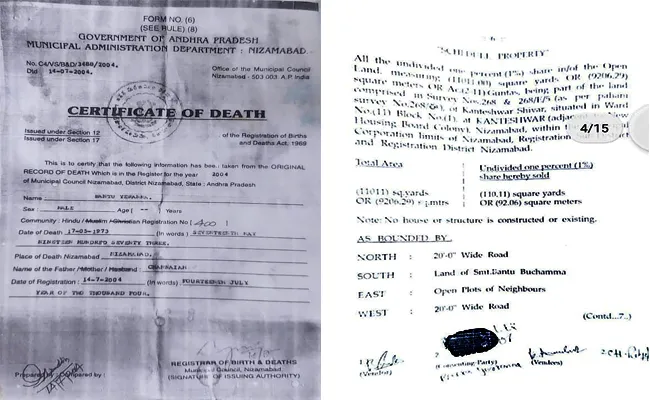 నగరంలోని కంఠేశ్వర్ ఏరియాలో గల సర్వే నెం.268లో 2.11 ఎకరాల భూమి ఉంది. ఈ మొత్తం స్థలాన్ని కేవలం 110 గజాలుగా చూపి ఇటీవల వేరే వారి పేరిట రిజిస్ట్రేషన్ చేశారు. విచిత్రమేమిమంటే ఈ భూమి యజమాని బంటు ఎర్రన్న 1973లో చనిపోయాడు. ఆయన కుటుంబ సభ్యులు 2004లోనే డెత్ సర్టిఫికెట్ కూడా తీసుకున్నారు. అయితే కొంత మంది అక్రమార్కులు కలిసి 2.11 ఎకరాల భూమిని కాజేయాలని ప్లాన్ చేశారు. ఇన్చార్జి సబ్ రిజిస్ట్రార్తో కుమ్మక్కై బంటు ఎర్రన్న తన భూమిని ఇతరులకు విక్రయించినట్లు డాక్యుమెంట్లు సృష్టించి రిజిస్ట్రేషన్ పూర్తి చేశారు. అయితే, 50 ఏళ్ల క్రితం చనిపోయిన ఎర్రన్న గత సెప్టెంబర్ 3న తన భూమిని ఇతరుల పేరిట ఎలా రిజిస్ట్రేషన్ చేశారనేది మిలియన్ డాలర్ల ప్రశ్న.