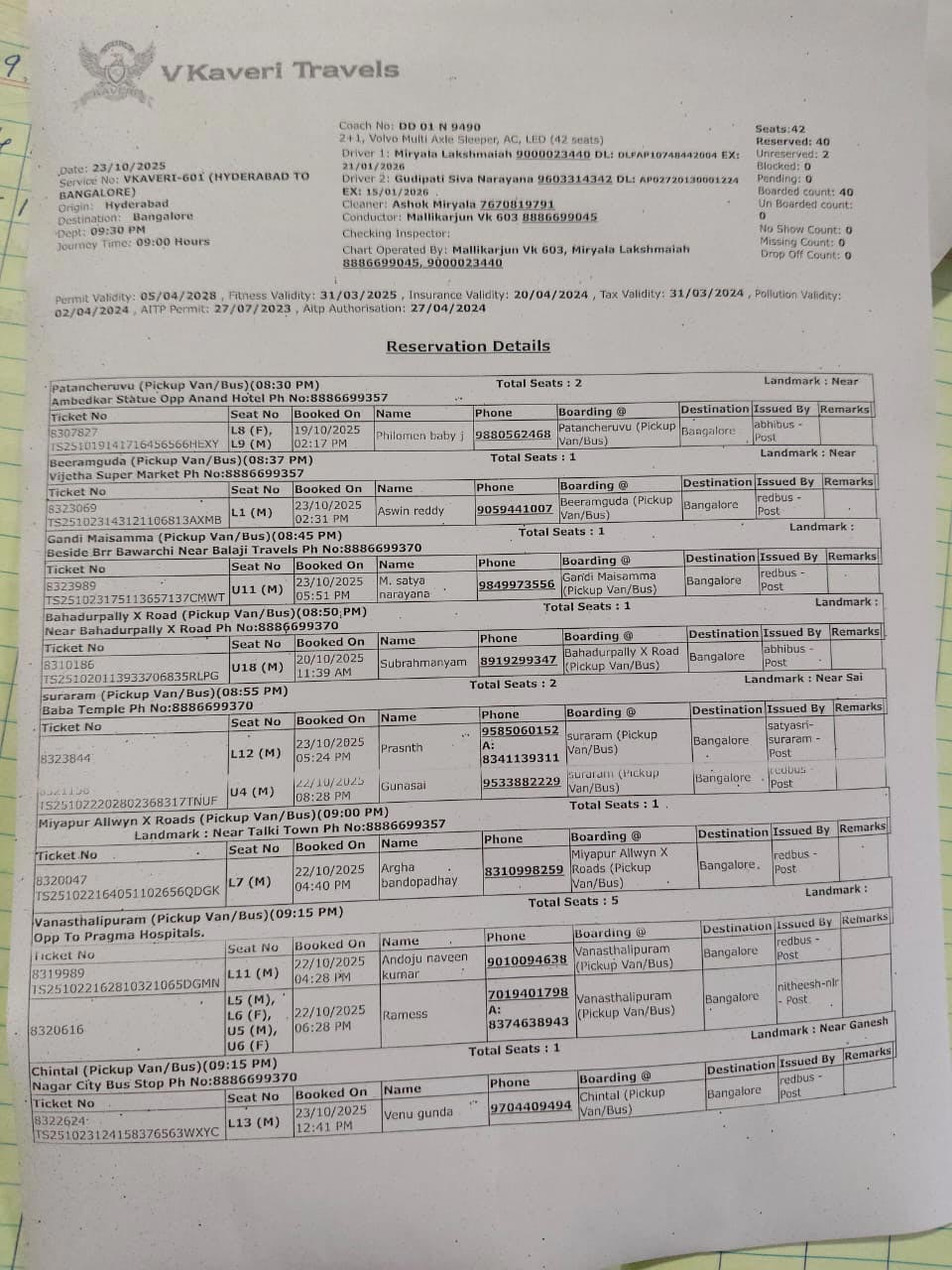 వి కావేరి ట్రావెల్స్ మెయిన్ ఆఫీస్ పటాన్ చెరులో ఉంది. కూకట్ పల్లిలో మరో కార్యాలయం ఉంది. ప్రమాదానికి గురైన వోల్వో బస్సు(డీడీ01ఎన్9490).. రాత్రి 9.30గం. పటాన్చెరు నుంచి ప్రారంభమైంది. బీరంగూడ, గండి మైసమ్మ, బాచుపల్లి ఎక్స్ రోడ్, సూరారం, మియాపూర్, ఆల్విన్ ఎక్స్ రోడ్, వనస్థలిపురం పాయింట్లలో ప్రయాణికులను ఎక్కించుకొని బెంగళూరు వైపు బయల్దేరింది.