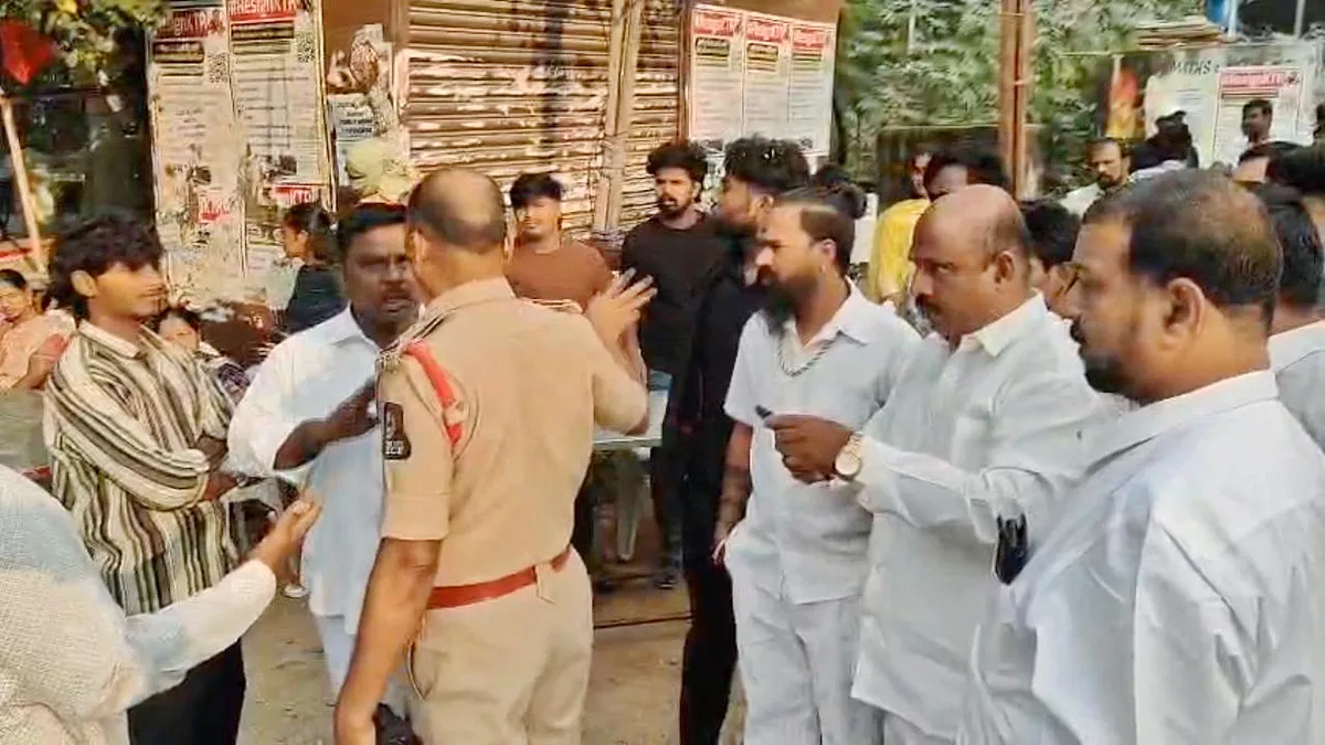 - పోలీసులతో కాంగ్రెస్ నేత సత్యనారాయణ వాగ్వాదం