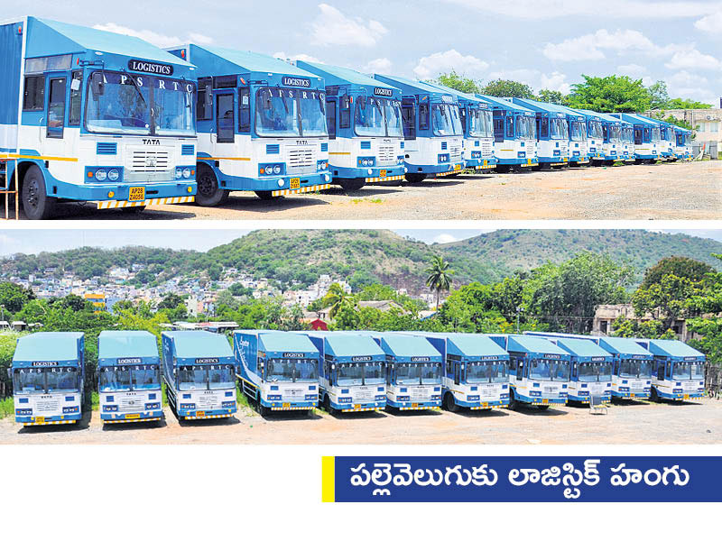 నష్టాల నుంచి గట్టెక్కేందుకు ఏపీఎస్ ఆర్టీసీ సరికొత్త ప్రయోగానికి శ్రీకారం చుట్టింది. అత్యధిక కిలోమీటర్లు తిరిగిన పల్లెవెలుగు బస్సులను లాజిస్టిక్ వ్యాన్లుగా మార్చుతోంది. విజయవాడలో ఇప్పటికే 30 పల్లెవెలుగు లాజిస్టిక్ వ్యాన్లు సిద్ధం చేశారు. వీటి ద్వారా రాష్ట్రంలోని అన్ని ప్రాంతాలకూ సరకు రవాణా చేయనున్నారు. ఒక్కో జిల్లాకూ రెండేసి వ్యాన్ల చొప్పున కేటాయిస్తూ డిమాండ్ ఉన్న ప్రాంతాలకు అదనంగా మరికొన్ని వ్యాన్లు కేటాయించనున్నారు. కరోనా కారణంగా ఎదురైన నష్టాల నుంచి కొంతవరకూ గట్టెక్కేందుకు కార్గో సర్వీసుల ద్వారా ఆదాయం పొందాలని అధికారులు భావిస్తున్నారు. – సాక్షి ఫొటోగ్రాఫర్, విజయవాడ