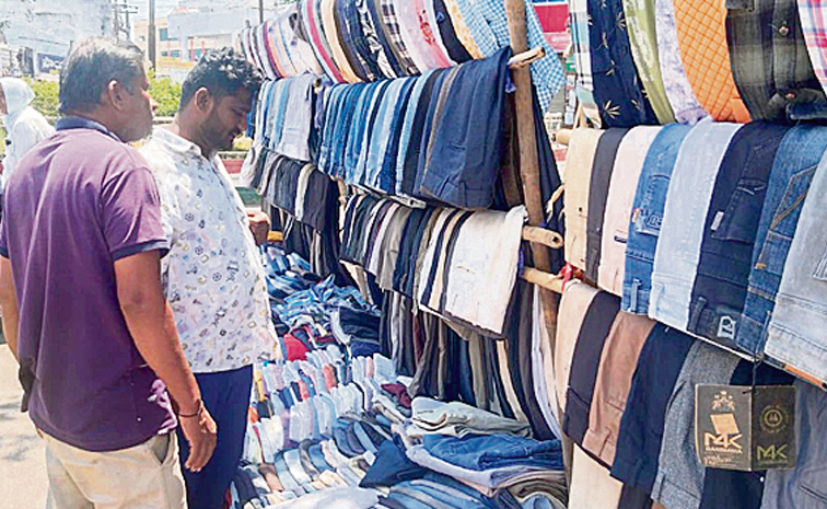 సిరిసిల్ల: కాటన్ జీన్స్.. జీన్స్.. టీషర్ట్స్.. షర్ట్స్.. ఇలా అన్ని రూ.150, రూ.100లకే లభిస్తాయి. రాజన్నసిరిసిల్ల జిల్లా కేంద్రంలో ప్రతీ ఆదివారం రోడ్లపైన చౌకధరలకే డ్రెస్సులు లభిస్తున్నాయి. గాంధీచౌక్ అడ్డాగా పేదల షాపింగ్మాల్స్ సందడిగా కనిపిస్తుంటాయి. లేబర్ అడ్డాపై పనిచేసే కూలీలు, నిత్యం కష్టమైన పనుల్లో నిమగ్నమయ్యే పేదలు ఇక్కడ సెకండ్హ్యాండ్ బట్టలను కొనుగోలు చేస్తుంటారు. తక్కువ ధరలకే డ్రెస్సులు వస్తుండడంతో ఆనందంగా రోడ్సైడ్ షాపింగ్ చేస్తున్నారు.