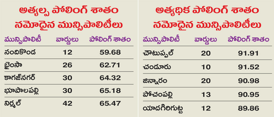 మున్సిపాలిటీల్లో అత్యధికంగా చౌటుప్పల్లో,అత్యల్పంగా నందికొండలో..
