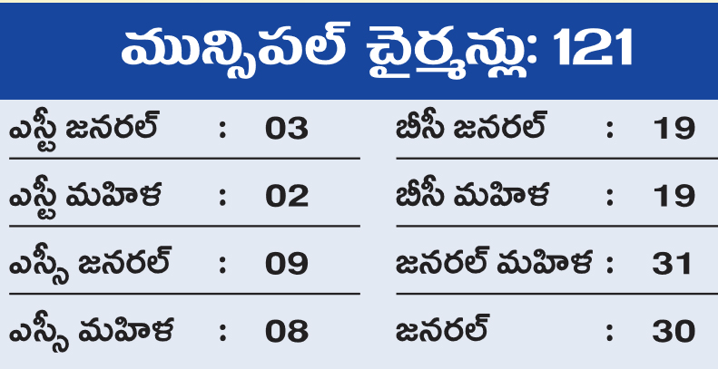 121 మున్సిపల్ చైర్మన్ పదవుల్లో 38 బీసీలకు కేటాయింపు