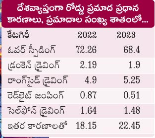 2022, 2023లలో సుమారు 70% యాక్సిడెంట్లు అతివేగంతోనే..