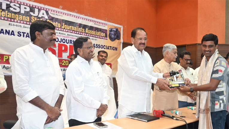 హైదరాబాద్: రాష్ట్ర ఫోటో జర్నలిస్ట్ అసోసియేషన్ ఆధ్వర్యంలో ఆదివారం 23వ ఉత్తమ ఫోటో జర్నలిస్ట్ అవార్డుల ప్రదానోత్సవ కార్యక్రమాన్ని నిర్వహించారు. మాజీ ఉపరాష్ట్రపతి ఎం.వెంకయ్య నాయుడు ముఖ్యఅతిథిగా హాజరై అవార్డులు అందజేశారు. నాంపల్లిలోని తెలంగాణ మీడియా అకాడమీ కార్యాలయంలో ఈ కార్యక్రమం జరిగింది.