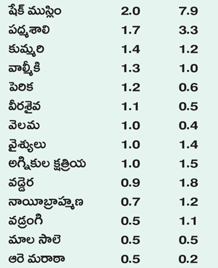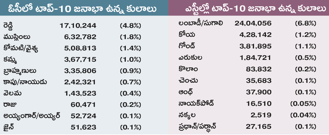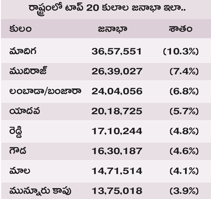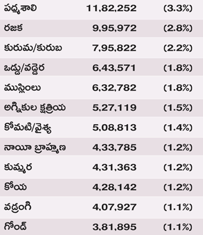 రాష్ట్రంలో ఉప కులాలవారీగా జనాభా చిత్రం తేటతెల్లం