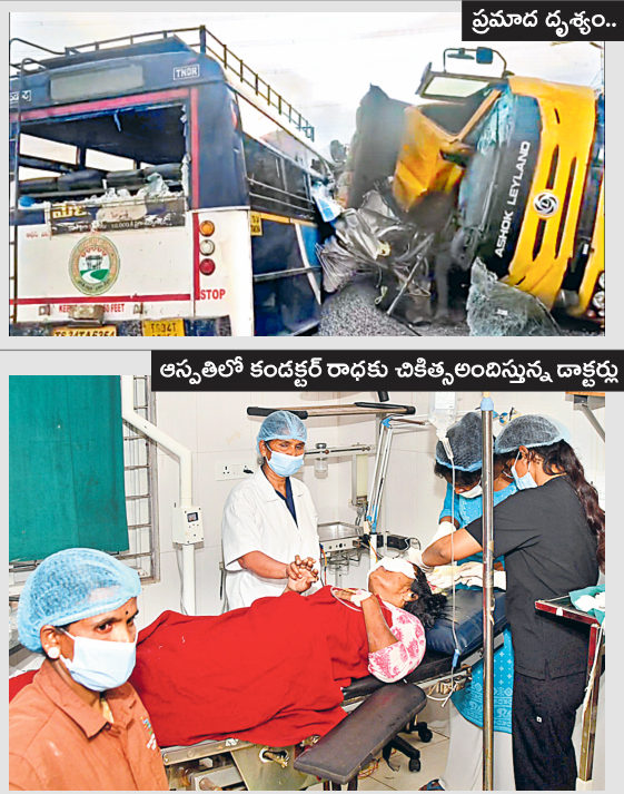 ఆర్టీసీ బస్సును ఢీకొట్టిన కంకర టిప్పర్..
