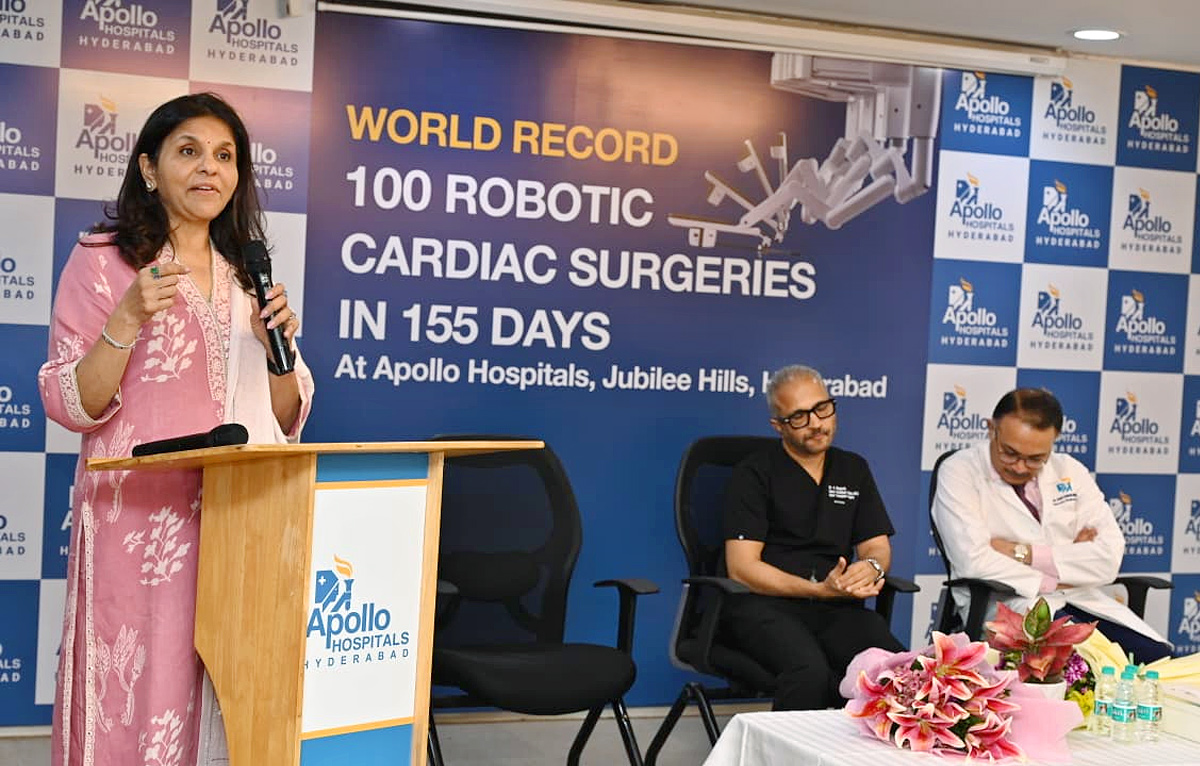 హైదరాబాద్ : రోబోటిక్ శస్త్ర చికిత్సల్లో కచ్చితత్వం ఉంటుందని మంచి ఫలితాలు కనిపిస్తాయని అపోలో ఆసుపత్రి సీనియర్ కన్సల్టెంట్ హార్ట్ ట్రాన్స్ ప్లాంట్ సర్జన్ డాక్టర్ నాగేష్ అయ్యల సోమయాజులు తెలిపారు. అపోలో ఆసుపత్రిలో 155 రోజుల్లో 100 రోబోటిక్ కార్డు శస్త్ర చికిత్సలు విజయవంతంగా పూర్తి చేసిన సందర్భంగా ఆయన ఆస్పత్రి జాయింట్ మేనేజింగ్ డైరెక్టర్ సంగీతారెడ్డి తో కలిసి విలేకరుల సమావేశం ఏర్పాటు చేశారు.