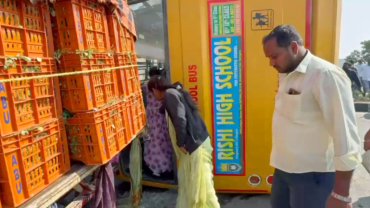 ఈ ఘటనకు సంబంధించిన వివరాలు ఇలా ఉన్నాయి. శంషాబాద్ నుంచి హైదరాబాద్లోని జలవిహార్కు పిల్లలను పిక్నిక్కు తీసుకెళ్తున్న రిషి స్కూల్ బస్సు బోల్తా పడింది. ముందున్న వాహనాన్ని తప్పించే ప్రయత్నంలో బస్సు ప్రమాదానికి గురైంది. ప్రమాద సమయంలో బస్సులో 60 మంది విద్యార్థులు ఉన్నారు. ప్రమాదం కారణంగా పలువురు విద్యార్థులు గాయపడటంతో వారిని స్థానిక ఆసుపత్రికి తరలించారు. ప్రమాదం కారణంగా శంషాబాద్ రూట్లో భారీగా ట్రాఫిక్ జామ్ ఏర్పడింది. ఈ ఘటనపై మరింత సమాచారం తెలియాల్సి ఉంది.