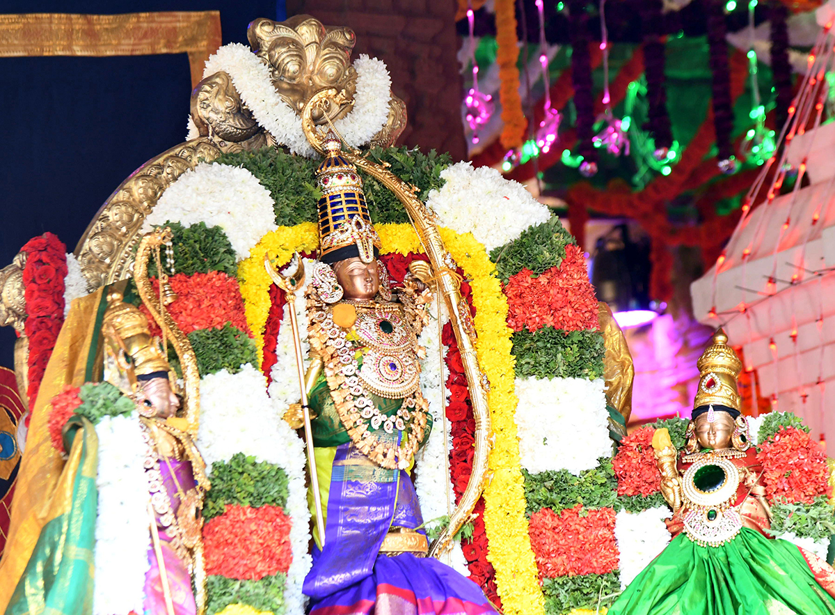 కాకినాడ జిల్లా: పెదపూడి మండలం గొల్లల మామిడాడ గ్రామంలోని ప్రసిద్ధి గాంచిన కోదండ రామాలయంలో శ్రీసీతారాముల కల్యాణం ఘనంగా నిర్వహించారు. ఇవాళ మధ్యాహ్నం 12 గంటలకు అభిజిత్ లగ్నంలో రాములోరి కళ్యాణం జరిగింది. ఉదయం 10 గంటలకు కళ్యాణ క్రతువు ప్రారంభమైంది. సుదూర ప్రాంతాల నుండి కళ్యాణం చూడడానికి ముందురోజే భక్తులు తరలివచ్చారు.