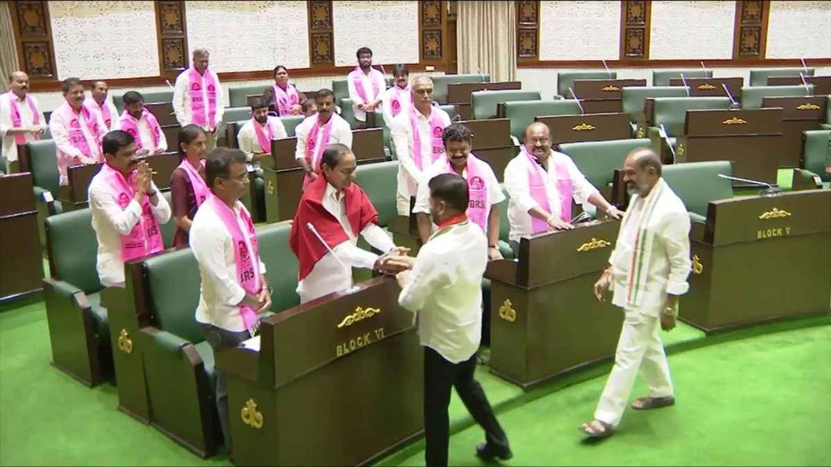 - ఫిరాయింపు ఎమ్మెల్యేలు ట్రెజరీ బెంచీలలో కూర్చోవడాన్ని గతంలో తప్పు పట్టిన బీఆర్ఎస్ ఎమ్మెల్యేలు