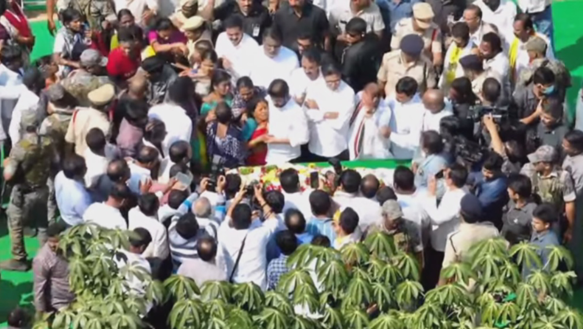 అందెశ్రీ అంత్యక్రియలకు సీఎం రేవంత్ రెడ్డితో పాటు పలువురు మంత్రులు, ప్రభుత్వ సలహాదారులు, ఎమ్మెల్యేలు, ఎమ్మెల్సీలు, ఉన్నతాధికారులు, కవులు, కళాకారులు, మేధావులు, టీపీసీసీ చీఫ్ మహేష్గౌడ్ హాజరయ్యారు. అందెశ్రీ పార్థీవ దేహానికి నివాళులర్పించి.. కుటుంబ సభ్యులను సీఎం రేవంత్ ఓదార్చారు. అందెశ్రీతో తనకు ఉన్న అనుబంధాన్ని గుర్తు చేసుకుని భావోద్వేగానికి లోయ్యారు. ఆపై అందెశ్రీ పాడెను సీఎం రేవంత్ మోశారు.