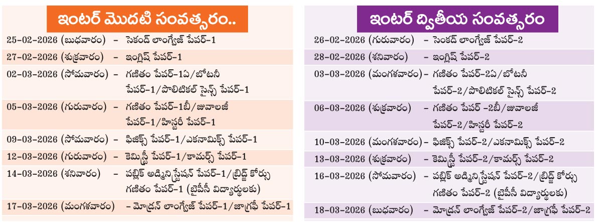 ఇంటర్ పరీక్షల తేదీల ప్రకటన