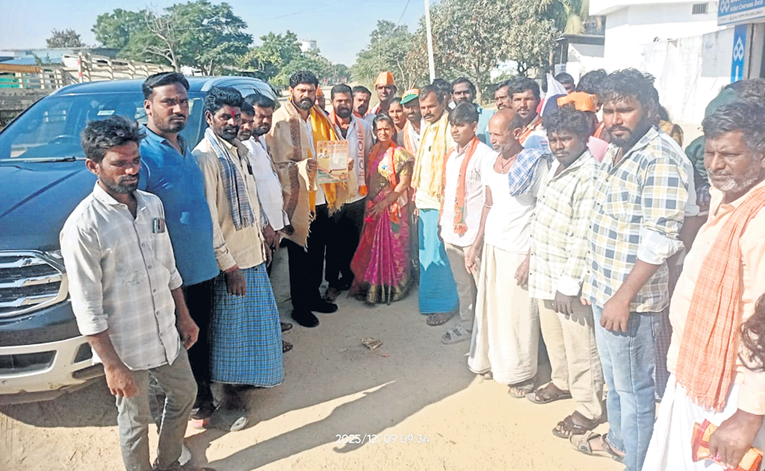 దేవరకద్ర రూరల్: మండలంలోని లక్ష్మీపల్లిలో సర్పంచ్ రోజా అభ్యర్థి గ్రామంలోని ఓటర్లును ఆకట్టుకునేలా సర్పంచ్గా తనను ఎన్నుకుంటే చేసే పనులపై ఓ మేనిఫెస్టో చేసి బాండ్పేపర్తో ప్రచారం నిర్వహిస్తున్నారు. మ్యానిఫెస్టోకు సంబంధించిన బాండ్పేపర్ను గురువారం లక్ష్మీపల్లిలో బీజేపీ నియోజకవర్గ ఇన్చార్జి ప్రశాంత్రెడ్డి చేతులమీదుగా గ్రామస్తుల సమక్షంలో విడుదల చేశారు. ఇందులో ప్రధానంగా శివాజీ విగ్రహ ఏర్పాటు, గ్రంథాలయం, హెల్త్క్యాంప్లు, గ్రామంలో మౌలిక వసతులు కలిపి 20 వరకు ఉన్నాయి. ఇచ్చిన హామీలలో 70 శాతం పనులు మూడేళ్లలో పూర్తి చేస్తానని.. లేదంటే రాజీనామా చేస్తానని పేర్కొంటూ ఓట్లు అభ్యరి్థంచారు.