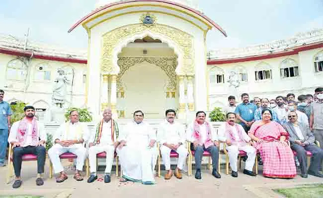 సాక్షి, హైదరాబాద్: శాసన సభ్యుల కోటాలో నవంబర్ 22న శాసన మండలికి ఏకగ్రీవంగా ఎన్నికైన ఐదుగురు సభ్యులు గురువారం ప్రమాణ స్వీకారం చేశారు. శాసనమండలి చైర్మన్ చాంబర్లో జరిగిన ఈ కార్యక్రమంలో కడియం శ్రీహరి, గుత్తా సుఖేందర్రెడ్డి, తక్కల్లపల్లి రవీందర్రావు, పాడి కౌశిక్రెడ్డి, పరుపాటి వెంకట్రామిరెడ్డితో ప్రొటెమ్ చైర్మన్ వెన్న వెరం భూపాల్రెడ్డి ప్రమాణ స్వీకారం చేయించారు. శాసనసభ వ్యవహారాల శాఖ మంత్రి వేముల ప్రశాంత్రెడ్డితో పాటు మంత్రులు మహమూద్ అలీ, సత్యవతి రాథోడ్, జగదీశ్రెడ్డి హాజరై నూతన సభ్యులను అభినందించారు.