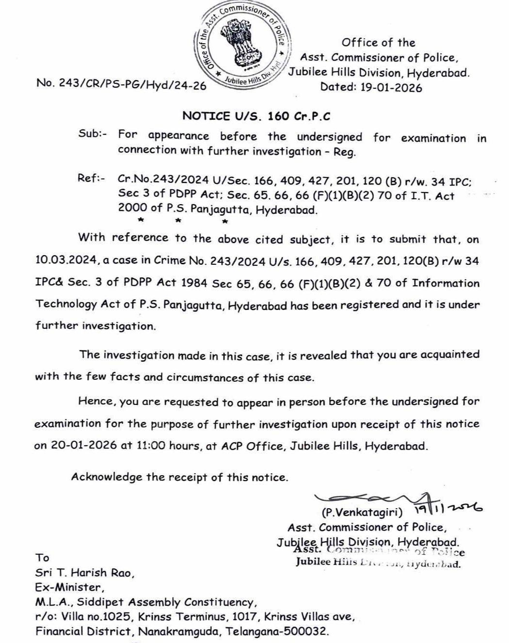 👉హరీష్ రావు తన ఫోన్ ట్యాంపింగ్ చేయించారంటూ ఓ వ్యాపారి ఫిర్యాదు చేసిన సంగతి తెలిసిందే. కిందటి ఏడాది మార్చి 10వ తేదీన ఈ ఫిర్యాదుపై పంజాగుట్ట పీఎస్లో కేసు నమోదు అయ్యింది. అయితే ఈ కేసును హైకోర్టు కొట్టేయగా, తెలంగాణ ప్రభుత్వం సుప్రీం కోర్టును ఆశ్రయించింది. అయితే అక్కడ సర్కార్కు చుక్కెదురైంది. అయినప్పటికీ ఈ కేసు ఎఫ్ఐఆర్ ఆధారంగానే సీఆర్పీసీ 160 సెక్షన్ కింద సిట్ నోటీసులు జారీ చేసింది.