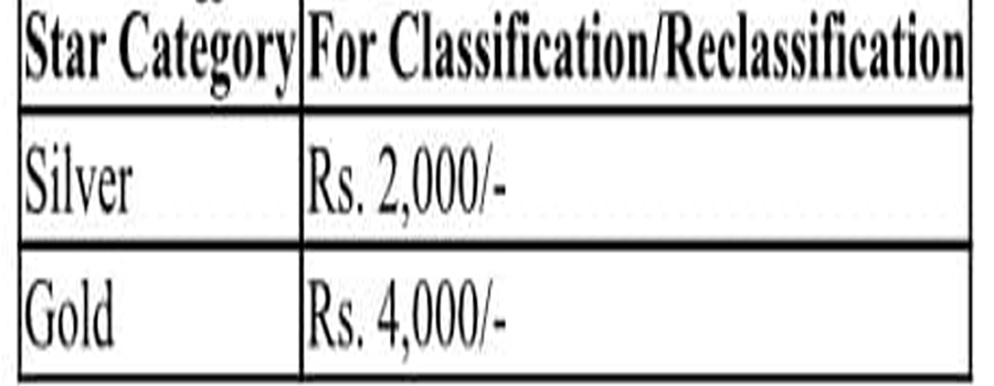 హోమ్ స్టేలు వెండి (Silver), బంగారం (Gold) వంటి రెండు వర్గాల్లో వర్గీకరించబడతాయి. వర్గీకరణ,పునర్వర్గీకరణ కోసం దరఖాస్తు రుసుములు: